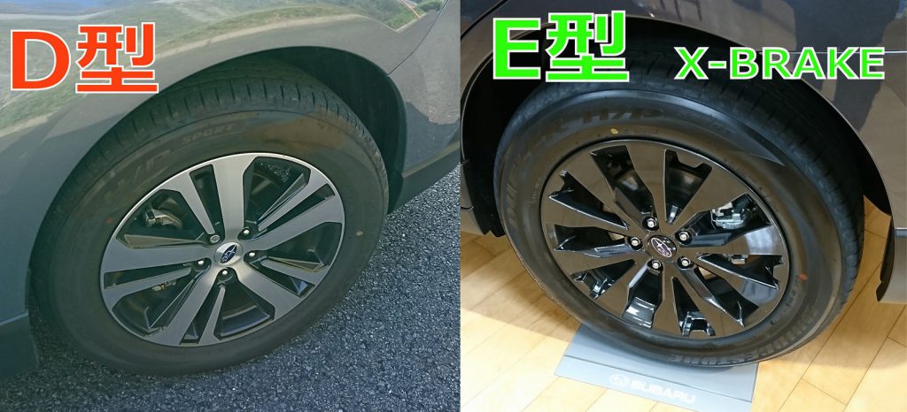 内装についてはほぼ変化なしで、ルーフレールに荷台があるのと黒いホイールが印象的でした。Webで見たときは黒ずくめもかっこいいかなと思いましたが、ちょっと黒すぎて変化がないかも。せっかくなのでD型とE型X-BRAKEのホイール比較も載せておきますので、購入を検討されている方は参考にしていただければ。