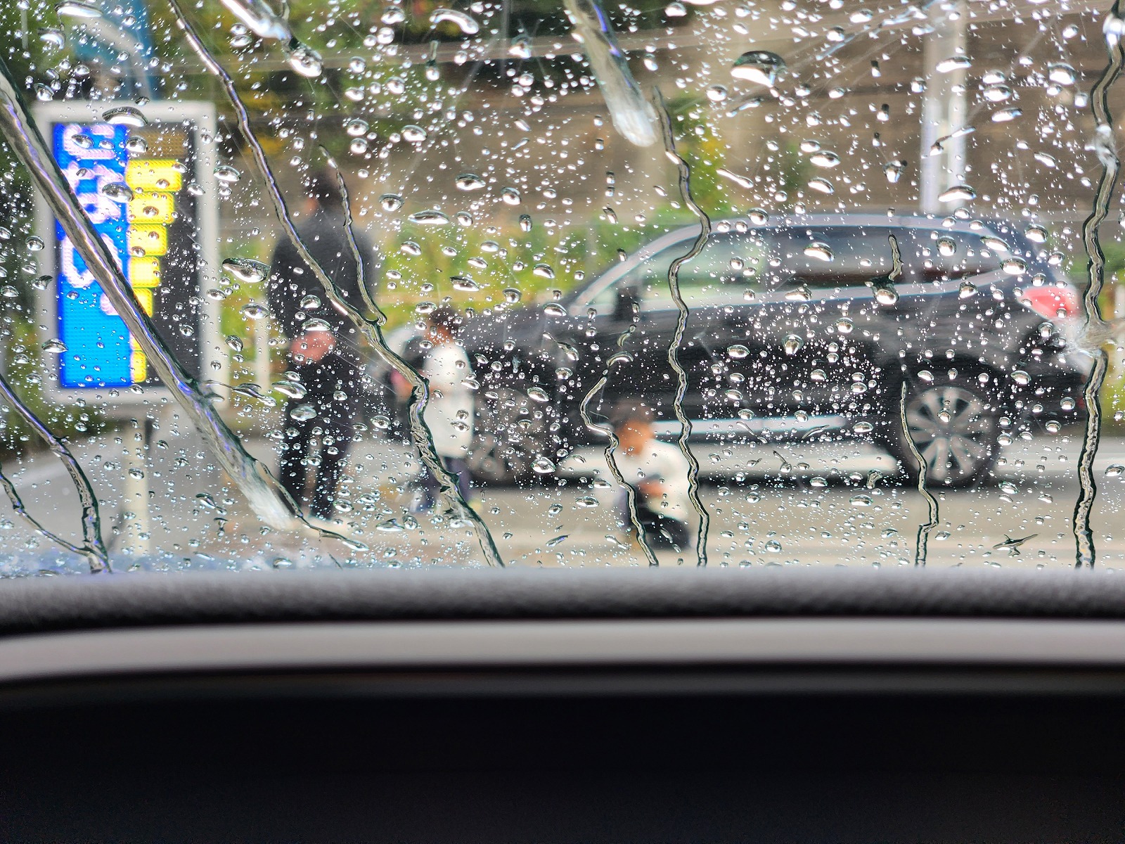 そして前からの図。駐車に慣れていないので、きちっと枠内に停められてないですね・・・。