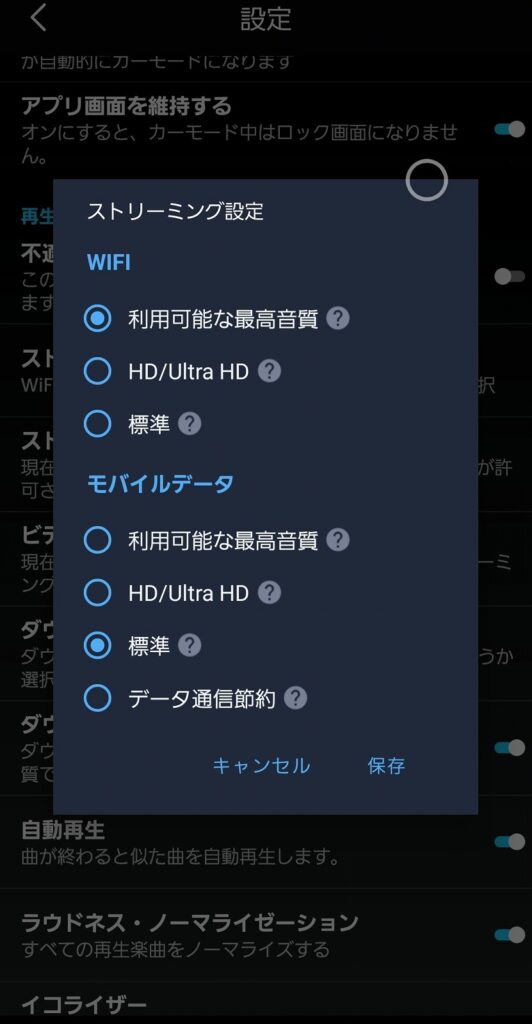 もはや打つ手がかなりなく、考えられる手としてAmazon Musicのストリーミングの品質を最高音質から標準に変えてみましたのですが、改善することはありませんでした。