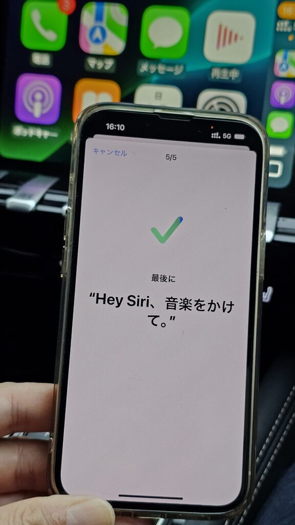 ただ、iPhoneでSiriの設定をオンにしないと使えない仕様になっているようで、起動後にSiriの設定を促されますので、何個か声を聞かせてSiriの設定をオンにします。