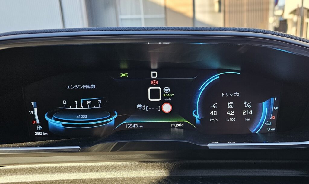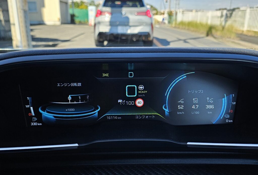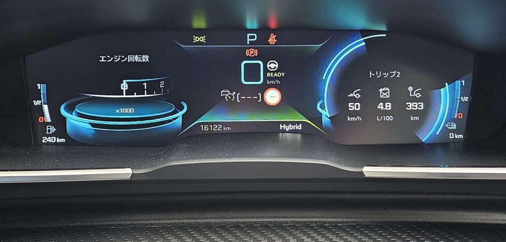 時速120Km程度で走る15.7Km/Lとのと時速80Km程度で走る26.3Km/Lは結構燃費が違いますね。120Kmを維持しようとするとエンジンで加速しないといけないのに比べて、80Kmでの走行時はそれなりの割合でエンジンを切って惰性走行が行われていたので、その辺の効果もあると思います。