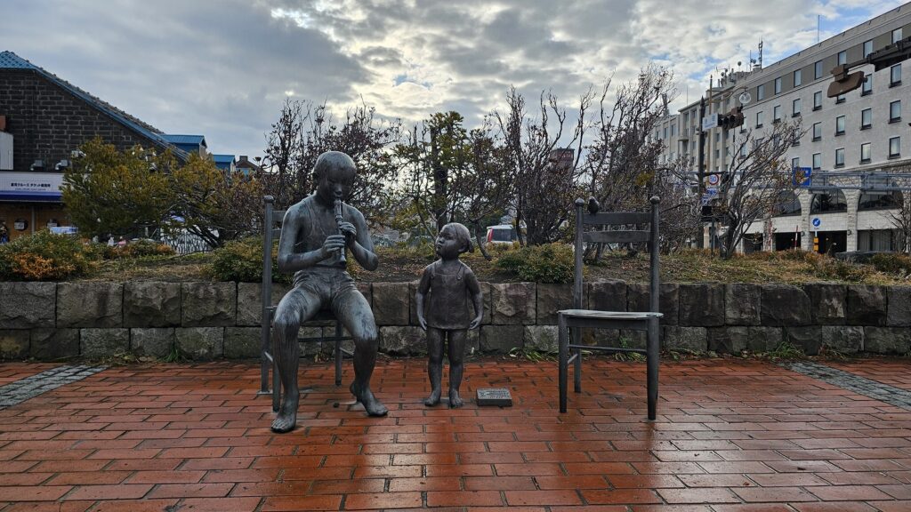 ④小樽のルタオの前にある犬の銅像が感動的なシーンを生む動画