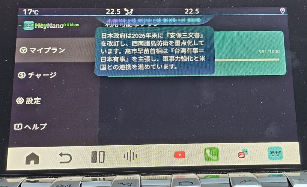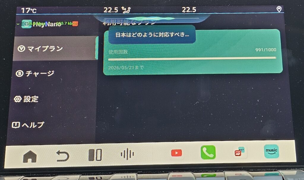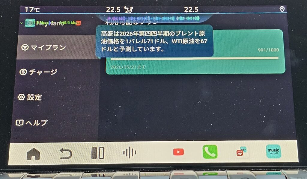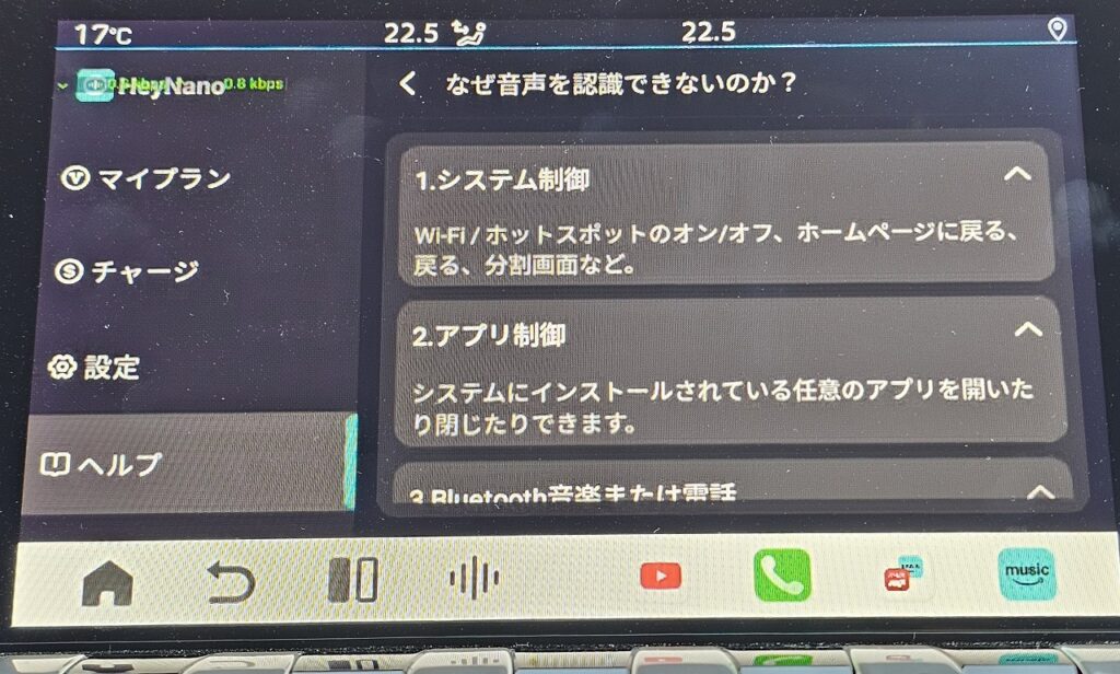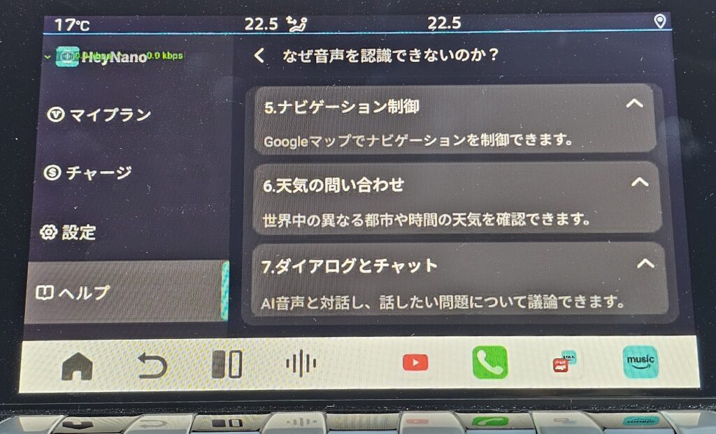 Ottocast P3 Proを購入したのは、アプリを入れられる自由度に加えて、「Hey Nano」という独自のAI音声サービスがあるというのも少し期待していました。