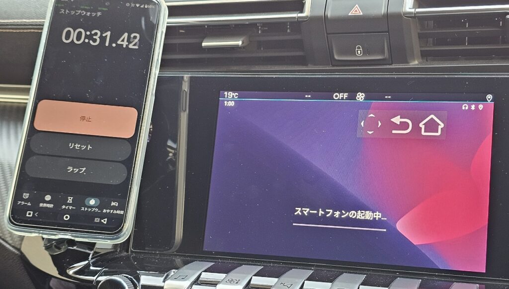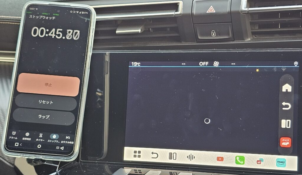⑤設定忘れてしまったのですが、Car Launcher Proの次の画面に変わったのが1分4秒-5秒=59秒